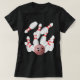 Uma ilustração vetorial de uma bola de boliche de tremoço vermelho que está recebendo um ataque.Um design divertido para os boliches. O fundo é preto e os pinos vermelho e branco estão voando no ar.