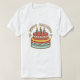 A nossa design de camiseta de bolo de aniversário é uma celebração em si mesma, mostrando um bolo extremamente detalhado adormecido com decorações caprichosas e velas em chamas. Com seu charme festivo e cores vibrantes, é o traje perfeito para comemorar momentos especiais com calor e alegria.