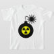 Uma representação gráfica dos perigos da energia nuclear. Uma bomba com um fusível iluminado queimando para o apocalipse nuclear.