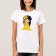 Boneca de Kokeshi da harmonia nas misturas do Tshirt amarelo