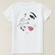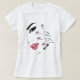 Camiseta personalizada bonita com rosto de mulher e unhas coloridas de vidro celebrando 50 anos de vida. A mesma arte de ambos os lados.
