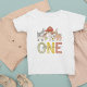 Camiseta de primeiro aniversario de lindos casqueiros com animais de exploração adoráveis, incluindo vacas, cabras, suínos, ovinos, burros, cavalos, coelhos, patos e galos, idade da criança e o nome das crianças em uma letra elegante.