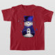 Uma camisa de Natal engraçada e fofinha, com um adorável bonitinho de neve vestido de chapéu azul e colete de veludo, cercada por estrelas e arcos para adicionar alguma bondade de Natal ao guarda-roupa do seu filho nesta temporada de férias.