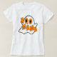 Camiseta fantasma do Dia das Bruxas Branca com fantasma branco e texto cor de laranja "boo mama". Festa de excelente de Halloween / truque ou camisa de tratamento para mães.
