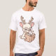Cute flat deer reading tiny open book – cozy bookworm cottagecore in clean minimal style.