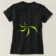 Camiseta elegante com imagens de boomerang amarelo em fundo preto.