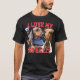 Crie a camiseta masculina "Eu amo meu cachorro" em preto com letras vermelhas no estilo rap e personalizado com o nome do seu animal de estimação. Altere as cores da fonte clicando no botão para editar a design. Faça um recorte das imagens removendo o plano de fundo e carregando um arquivo png transparente.