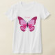 Uma borboleta gráfica em tons vivos de rosa e roxo é representada nesta design de camiseta fácil de personalizar.
