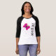Camiseta feminina mangas raglan 3/4 da Bella+Canvas, Branco/Cor-de-rosa, Adulto P