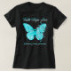 Camiseta Borboleta Fé Esperança Ama Consciência do Câncer d