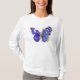 Borboleta de flores cinza, azul, safira, espumante com asa decorada com flores preciosos azuis com folhas de ouro sobre fundo branco.
