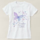 Uma delicada design de aquarela com uma graciosa borboleta azul-lavanda cercada por companheiros pastéis, simbolizando a transformação e a liberdade suave, com a frase "A liberdade começa com uma flecha." Perfeito para roupa suave e expressiva.
