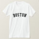 Verifique para fora este t-shirt de Boston! É você de Boston, Massachusetts? Você tem um amigo ou um membro da família que amem Boston, Massachusetts? Em caso afirmativo, este t-shirt da "bandeira" é exatamente o presente que você está procurando! As características de design "Boston" na rotulação preta arqueada na pia batismal clássica da faculdade.