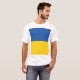 A bandeira da Ucrânia é uma faixa de duas bandas horizontais, de tamanho igual, de azul e amarelo. O topo representa o céu e o amarelo representa o trigo. Bandeira Nacional da Ucrânia