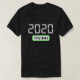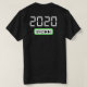 Esta t-shirt apresenta um design digital skip 2020 com texto branco e botão verde.