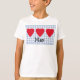 Esta camisa adorável apresenta um fundo xadrez azul e branco com um trio de corações vermelhos. Personalize com o nome do seu filho.