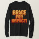 Esta t-shirt impressionante apresenta a frase ousada "Brace for Impact!" em letras laranja vibrantes e em letras vermelhas do estilo 3D, completas com efeitos de gotejamento dramáticos. A intensa tipografia e o cenário escuro criam um poderoso design perfeito para fazer uma declaração.