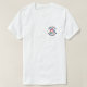 Camisa branca com logótipo, nome e url arredondados à frente, e logótipo com nome e lema no verso