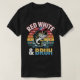 Peixe-robalo legal vestindo arte patriótica com listras retrô, saltando da água, e texto ousado de "Branco Vermelho & Bruh" — perfeito para o orgulho e amantes da pesca dos EUA.