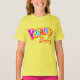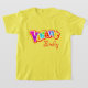 Camiseta gráfica multicolorida tipográfica vibrante para crianças com muita energia, vigor e uma personalidade vibrante e colorida. Personalize com o seu nome. Atualmente lê Vibrante Emily. Exclusivamente desenhada por Sarah Trett.