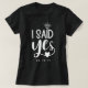 Eu disse que sim para a futura senhora com uma charmosa design de tipografia branca com um diamante a apontar o i e um pequeno coração abaixo do sim. t-shirt de tipografia festa de solteira para a noiva ser. Noiva de ser t-shirt com eu disse sim num design de tipografia branca.