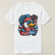 Esta camiseta branca apresenta um pato de desenho animado divertido vestindo óculos de sol e uma bandana vermelha, cercada por bandeiras e fogos de artifício americanos. Um cartaz diz "Red * and * White * and * Blew," criando um design patriótico lúdico.