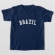 Verifique para fora este t-shirt de Brasil! É você de Brasil? Você tem um amigo ou um membro da família que amem Brasil? Em caso afirmativo, este t-shirt da "bandeira" é exatamente o presente que você está procurando! As características de design "Brasil" na rotulação branca arqueada na pia batismal clássica da faculdade.