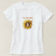 This tee shirt has a smiling cute girl's face with brown hair in the center of a bright yellow sunflower. Customise your text with the template.