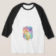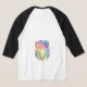 Camiseta Básica, Mangas Raglan 3/4, Branco/Preto, Adulto M