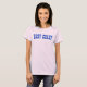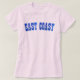 Esta camiseta fofa tem Costa Leste escrito em letras grandes e negrito em brilho falso azul.