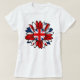 British women's white T-Shirt with The Union Jack flag sunflower design. This United Kingdom flag design is a great way to show you are proud to be British.