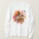 Esta camisa divertida do Halloween traz um chapéu de bruxa e diz Bruxa e Famosa abaixo dele. O fundo consiste em salpicos de aquarela em várias cores. Uma varinha das bruxas estreladas está no canto e há estrelas douradas espalhadas por toda a parte.