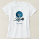 Esta camiseta temática "Halloween" apresenta uma bruxa assustadora voando sobre uma lua azul. Você pode personalizar o texto padrão "lua azul".