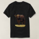 Foto sem redução de um búfalo de água africano que está em um remendo da grama secada