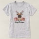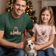 "This high-quality illustration features a majestic portrait of an English Bulldog with its characteristic wrinkles and determined expression. The dog is given a humorous and festive look with small reindeer antlers adorned with golden ornaments. Two beautifully wrapped Christmas presents with red ribbons sit prominently on either side. This graphic is ideal for personalized holiday gifts for Bulldog owners, Christmas cards, apparel, gifts for him, or any product celebrating this strong and lovable dog breed."