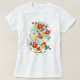 Aperte seu guarda-roupa com esta camiseta feliz apresentando um buquê solto de flores silvestres em retrorreflectos como tomate vermelho, laranja sherbet, verde limão, aqua brilhante e violeta azul serena e traga um pouco de sol para sua aparência.