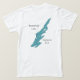 A pair of loons on the lake with a sunset in behind the and cattails on either side of them. On the back is a map of Butterfield Lake Redwood N.Y.