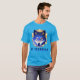 Ilustração da cabeça de um lobo em tons de azul com detalhes celestes e padrões simbolizando mistério, espiritualidade e conexão com a natureza, cercada por um círculo de intrincados designs ouros.