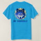 Ilustração de uma cabeça de lobo em tons de azul com detalhes celestiais e padrões que simbolizam mistério, espiritualidade e conexão com a natureza, rodeada por um círculo de desenhos dourados intrincados.