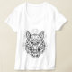 Visão frontal da cabeça de lobo com decorações étnicas e símbolos espirituais da lua e flechas. Retrato da frente do Predador com coalhada e ornamentos tribais.