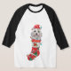 Camiseta Básica, Mangas Raglan 3/4, Branco/Preto, Adulto M