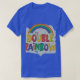 Esta design de camiseta celebra a maravilha da natureza! O "Arco-Íris Duplo!" está espalhado pela frente em uma fonte divertida e multicolorida. Dois arcos vibrantes do arco-íris no topo do design, fazer uma declaração brilhante e alegre.