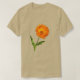 Flor, calendário cor de laranja floresce no colante de gravata pastel. As gotículas de água podem ser vistas nas pétalas. Cama verde e folhas.