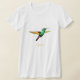 Camiseta multicolorida de beija-flores e ouro caligrafia. O texto pode ser personalizado.