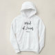 Camiseta Dama de Honra com capuz e letra elegante preta. Mais produtos com este design estão na coleção. Você pode alterar o texto na frente e nas costas.