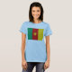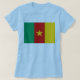A frente desta camiseta exibe corajosamente a bandeira camaronesa com sua estrela amarela distintiva sobre bandas verdes, vermelhas e amarelas. Isso é combinado atrás por um mapa atraente dos Camarões.