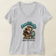 Uma ilustração muito adorável de um filhote com uma mochila e um cachecol ao lado de um globo. Há um texto colorido "Pawsitively" escrito sobre o desenho fofo do cachorro, e embaixo está a frase "Caminhando com Meu Amigo. Esta camisa está disponível para mulheres ou homens em muitos estilos, tamanhos e cores.