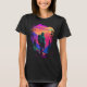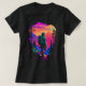Um legal design colorido da paisagem montanhosa com um caminhante no pôr do sol.