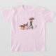 Caminhada feliz, a garota está levando um monte de cachorros para caminhar debaixo da chuva. Design de camiseta para garotas.