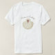 T-shirt featuring a scallop shell and Camino de Santiago cross design. The front shows a simple graphic combining both symbols. The back includes space for a custom name, positioned clearly on the upper area. Perfect for pilgrims on the Camino de Santiago.